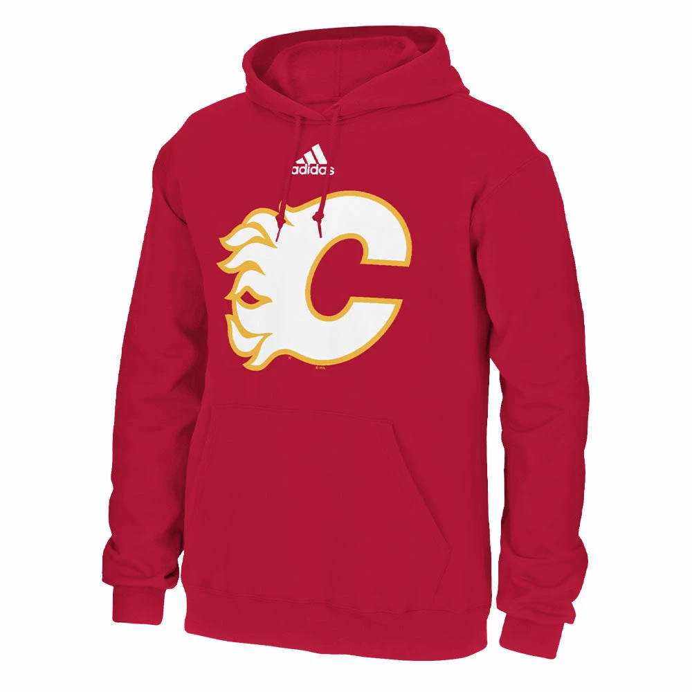 Show your Calgary Flames pride with the Adidas Big Logo Hoodie featuring the adidas logo on the front with the logo of the Calgary Flames proudly on the front