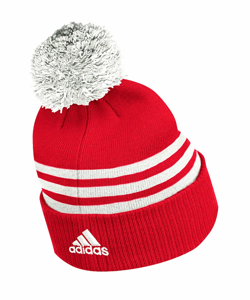 Show your Calgary Flames pride while staying warm and cozy with the 3-Striped Cuffed Pom Toque from adidas. Featuring the Calgary Flames logo on the front with a pom on top.