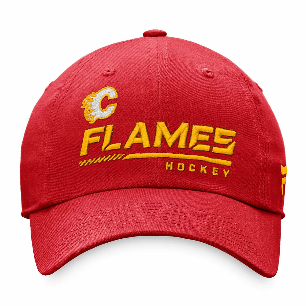Wear what the pros wear with this Official Locker Room hat from Fanatics featuring the Calgary Flames logo and wordmark on the front with an adjustable back.