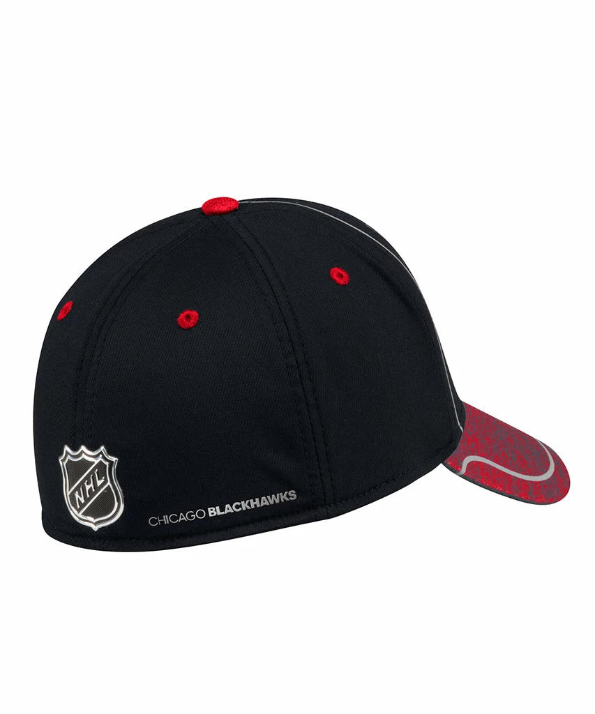 Salute the next wave of Blackhawks. This cap celebrates Chciago’s latest draft picks with embroidered team details. The hat features contrast eyelets and a heathered visor top.