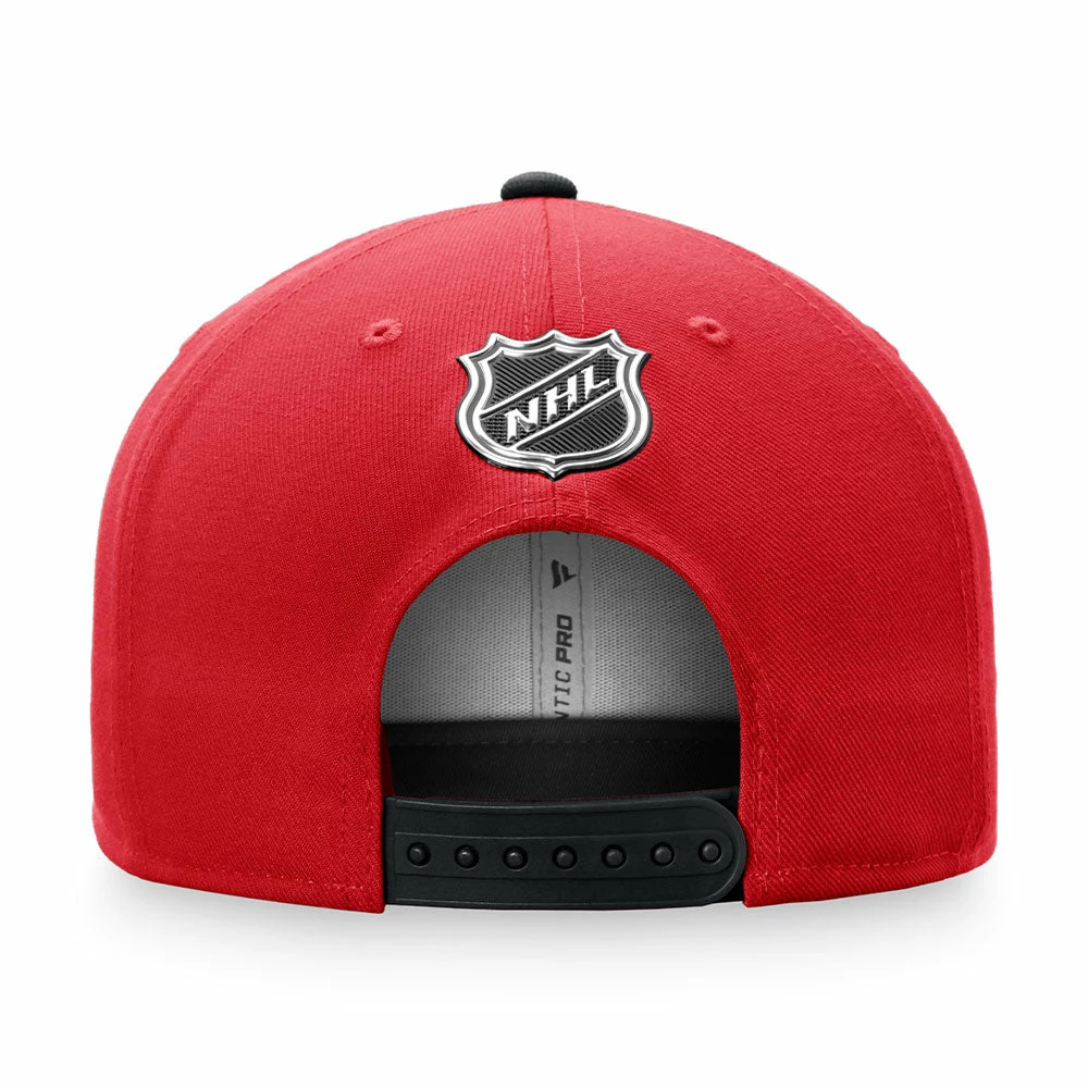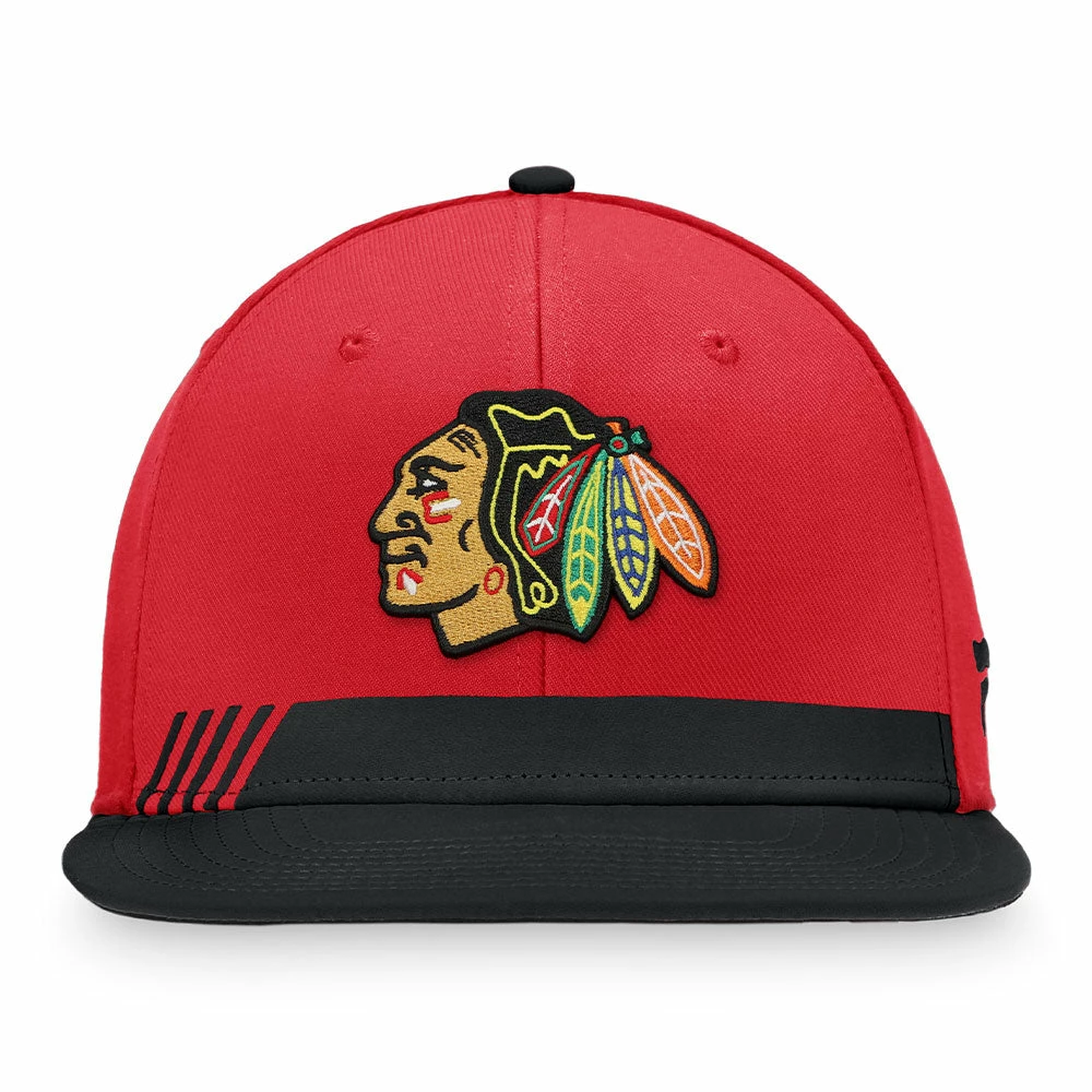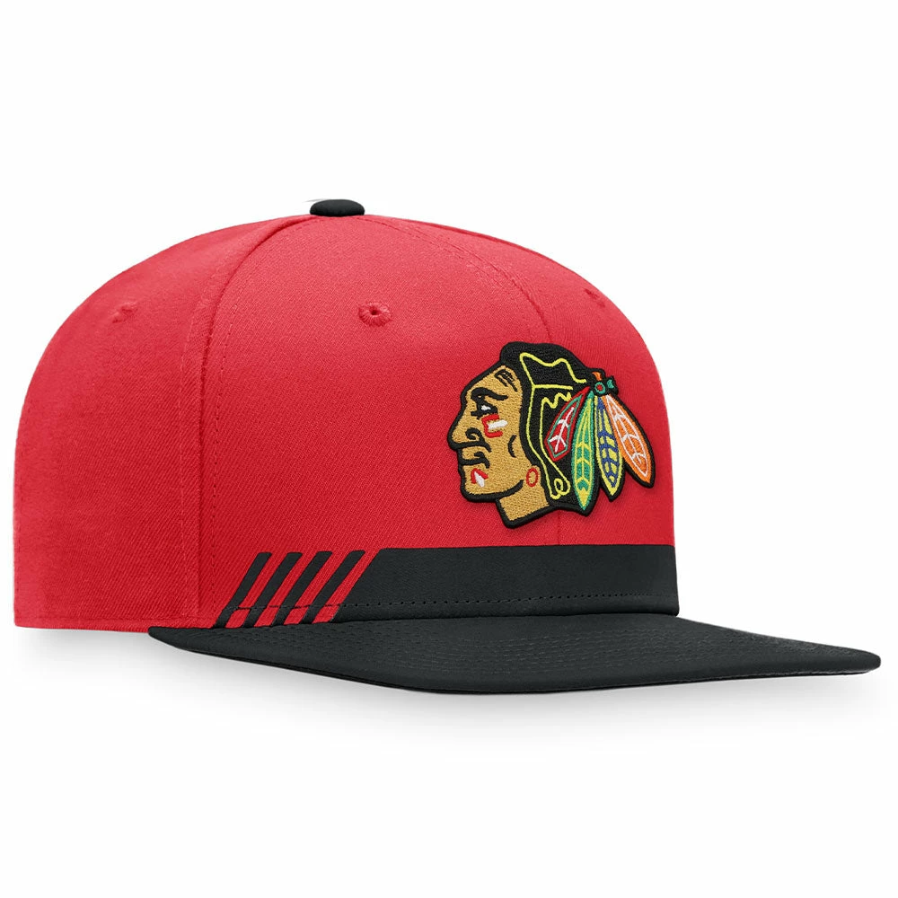 Wear what the pros wear with this Official Locker Room hat from Fanatics featuring an adjustable snapback strap and an embroidered Chicago Blackhawks logo on the front.