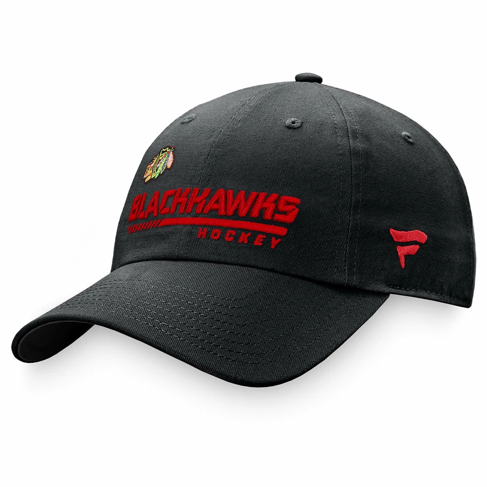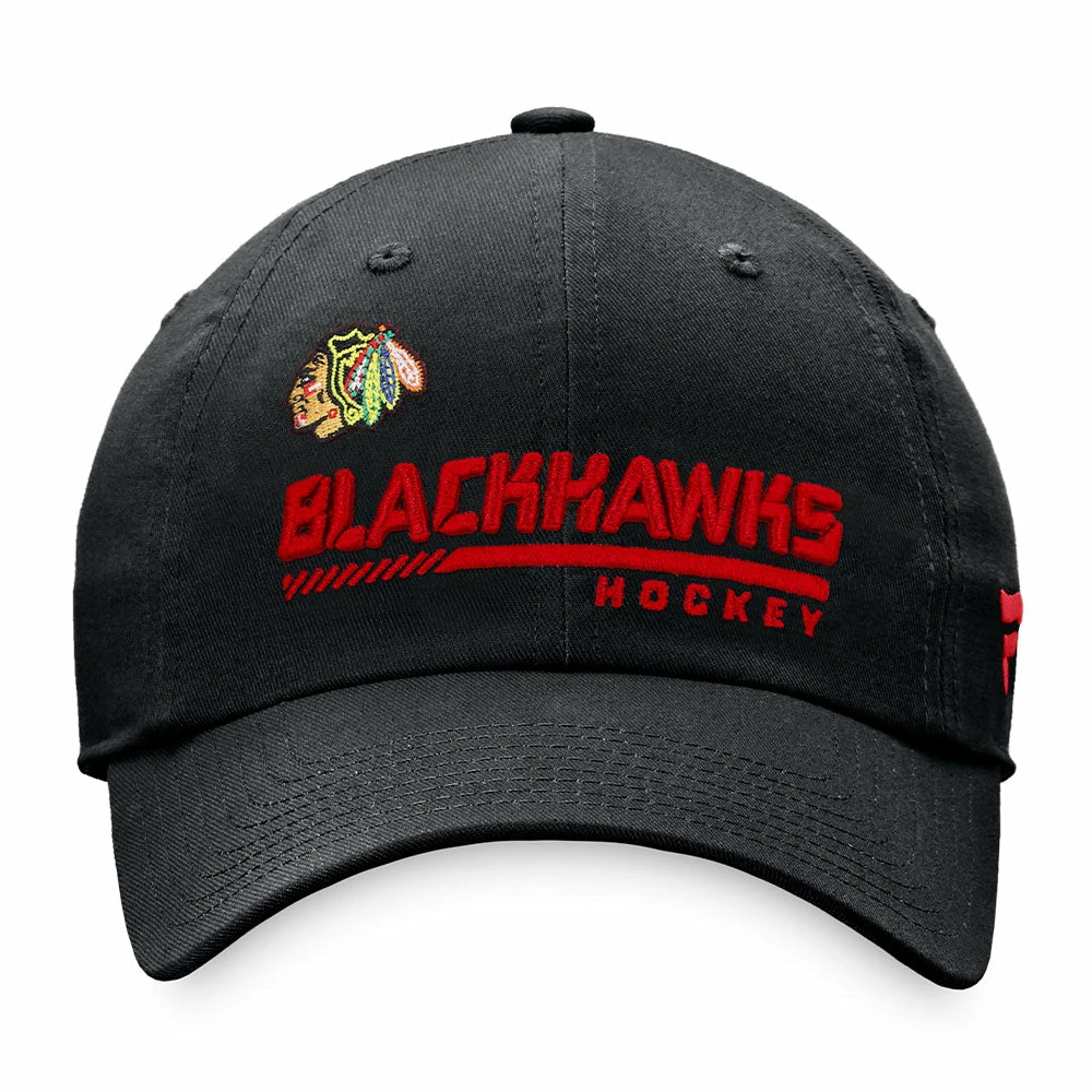 Wear what the pros wear with this Official Locker Room hat from Fanatics featuring the Chicago Blackhawks logo and wordmark on the front with an adjustable back.