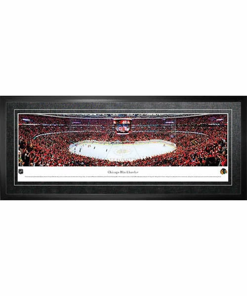 This NHL licensed panoramic frame showcases a stadium view of United Centre, home of The Chicago Blackhawks. The perfect finishing touch to any home or office.