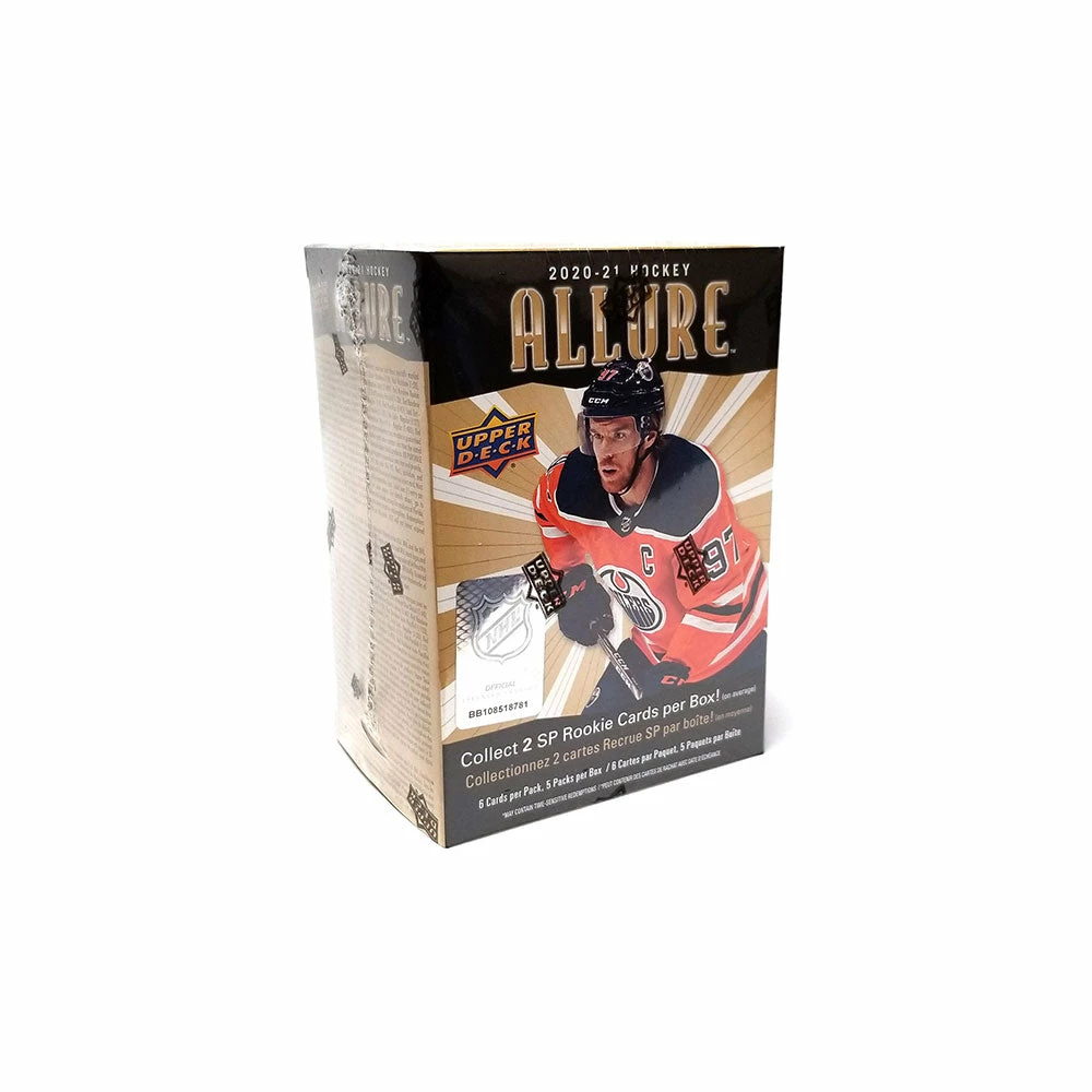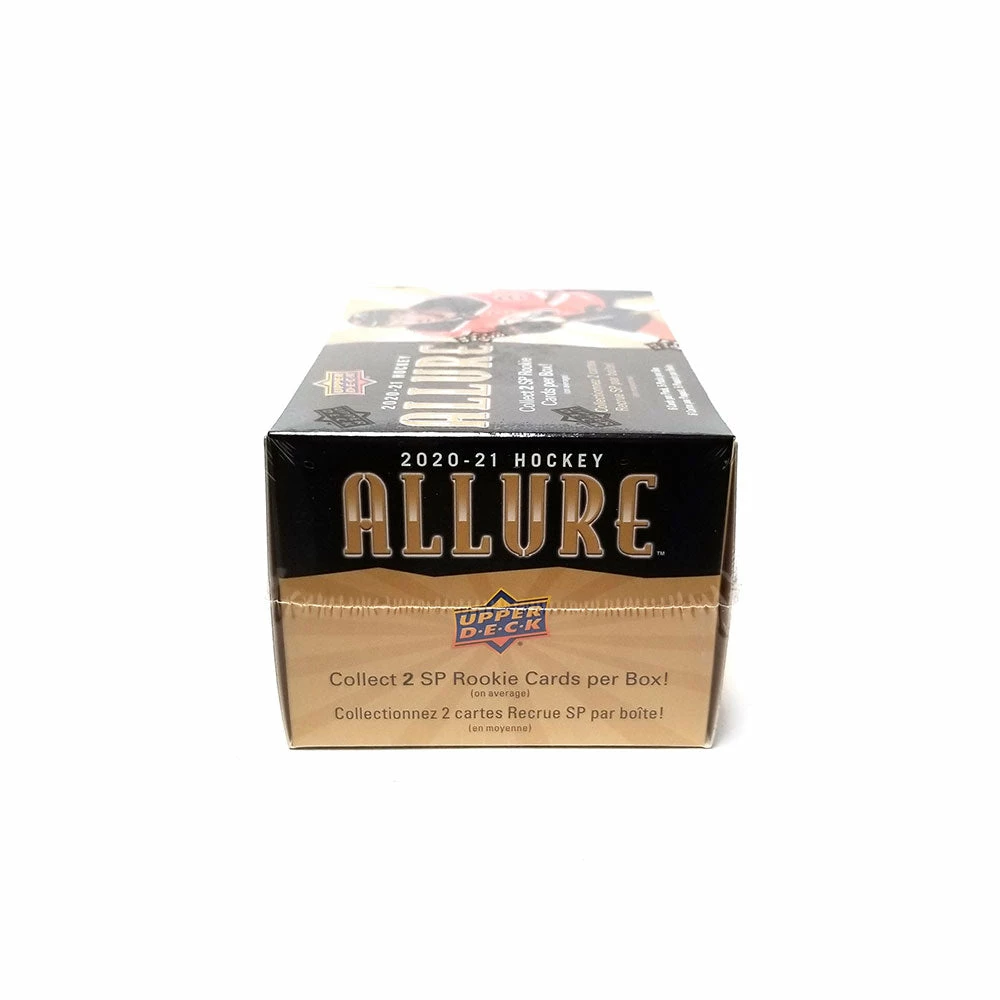 • Allureâ„¢, now in its second season following a very successful 2019-20 debut, sports a 150-card Base Set featuring 70 Veterans, 30 Rookies and 50 SP Rookies – the latter falling 1 in every 3 packs, on average. With several parallels ranging from simply color & pattern variations to color & pattern variations with autographs or memorabilia, Allureâ„¢ will appeal to a wide variety of collectors.