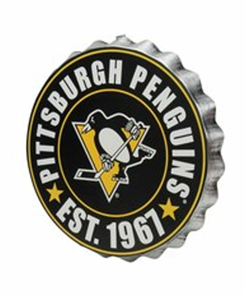 There is a spot on your wall that is missing something special to show off your Pittsburgh Penguins pride. Get this Bottle Cap wall sign for a fun and funky way to decorate your space! Featuring a unique bottle cap design and vivid painted graphics, this wall art will be the perfect complement to your Pittsburgh Penguins fan cave, home bar or living room!