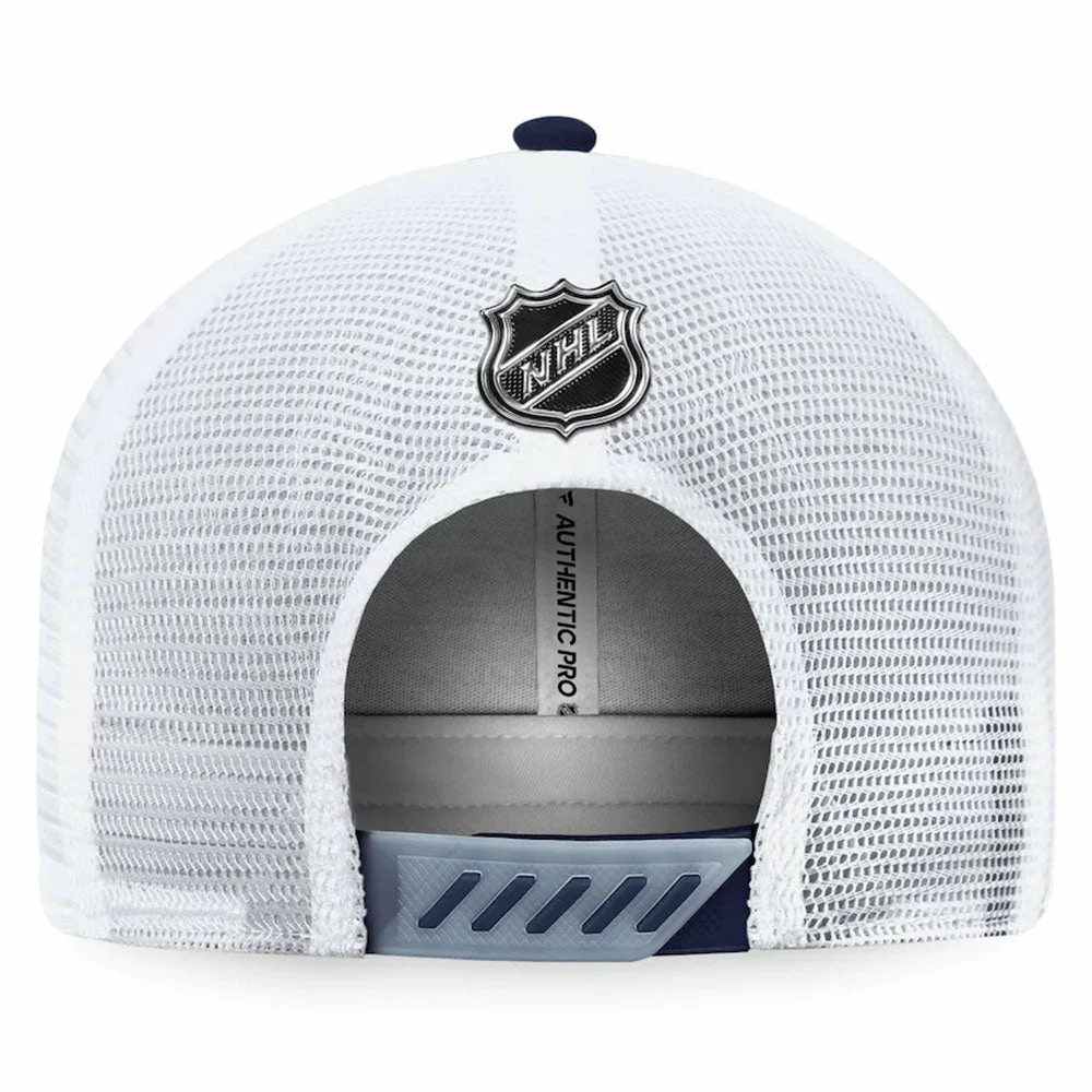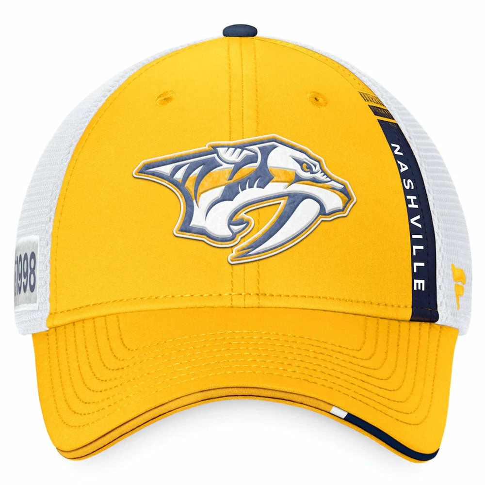 Get excited for the upcoming season as the Nashville Predators add fresh, new talent to their lineup by grabbing this FANATICS AUTHENTIC PRO 2022 NHL DRAFT STRUCTURED TRUCKER HAT. Its high crown adds style while its mesh panels add ventilation, keeping you comfortable all day long. This Fanatics Branded gear sports the same design and Nashville Predators graphics that the players will be wearing during the draft, ensuring that you always look and feel like the real deal.