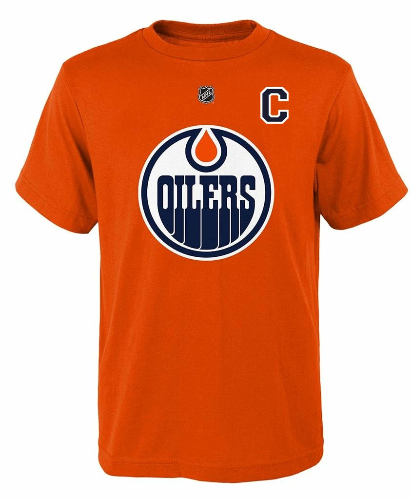 - A tee made in the style of the official home sweater of the Edmonton Oilers.