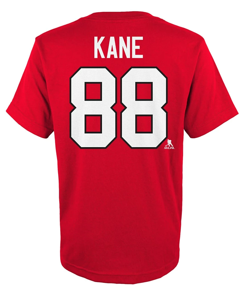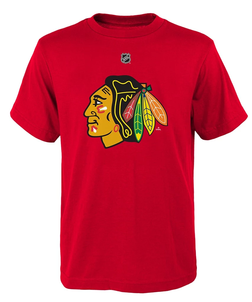 - A tee made in the style of the official home sweater of the Chicago Blackhawks.