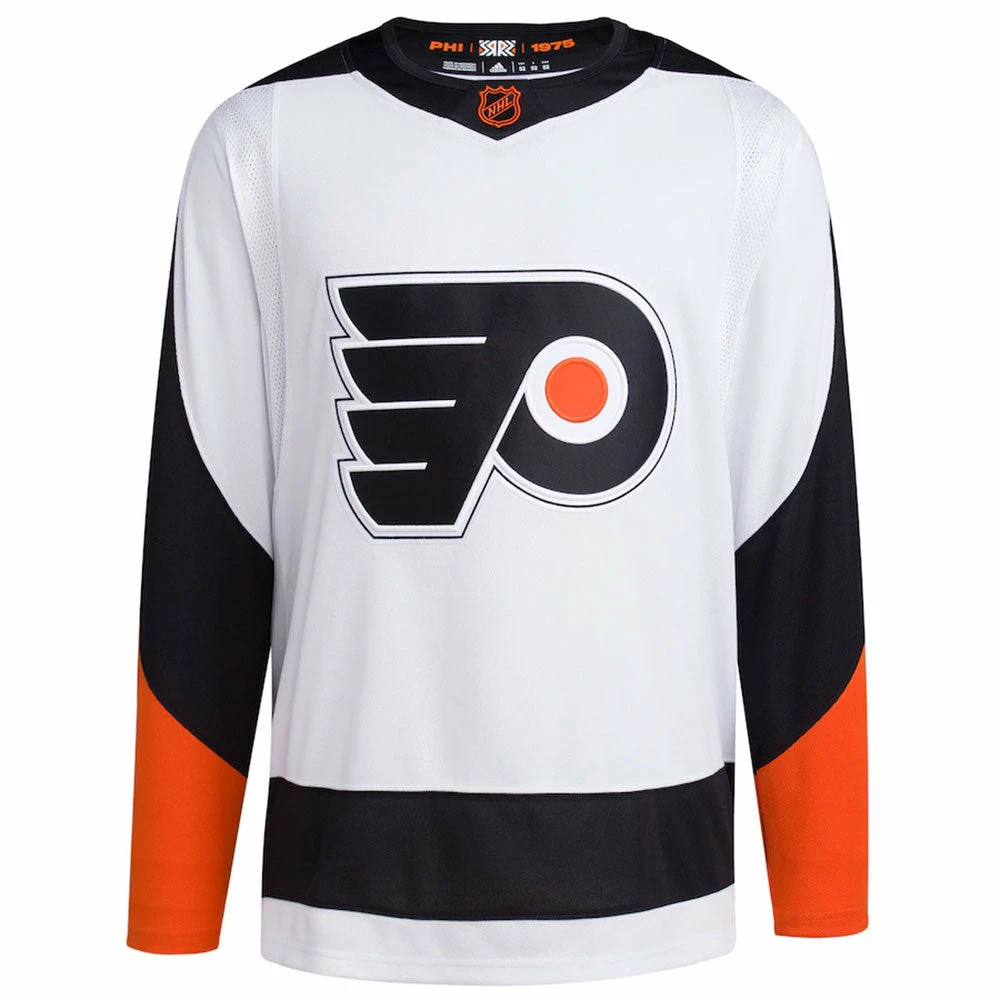 This Philadelphia Flyers Reverse Retro 2.0 Authentic Blank Jersey is a spirited piece to have for game day. Bold Philadelphia Flyers graphics match those worn by players on the ice, making you feel like a member of your favorite team. The adidas fabric technology will keep you comfortable while cheering the Philadelphia Flyers to victory.
