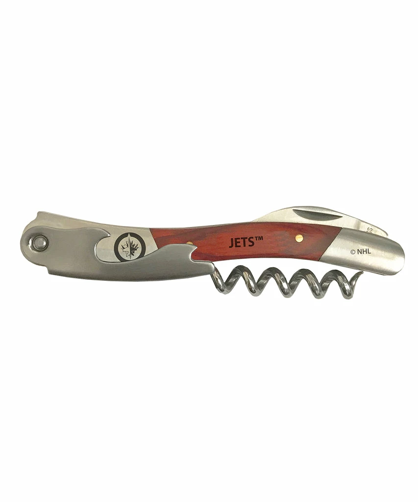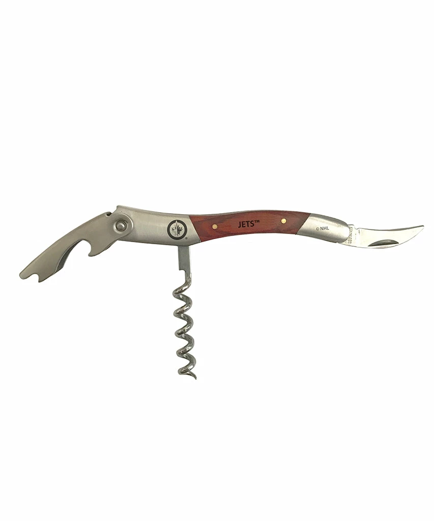 One of the most important tools in the kitchen, this utility waiter wine bottle opener features a cork screw, bottle opener and a utility knife