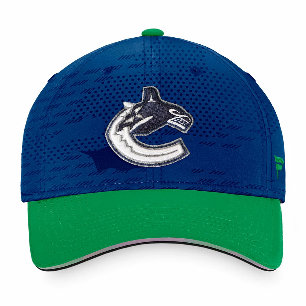 Wear what the pros wear with this Official Locker Room hat from Fanatics featuring the Vancouver Canucks logo and wordmark on the front with an adjustable back.
