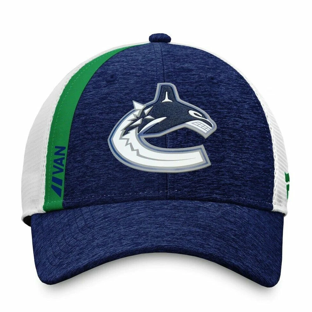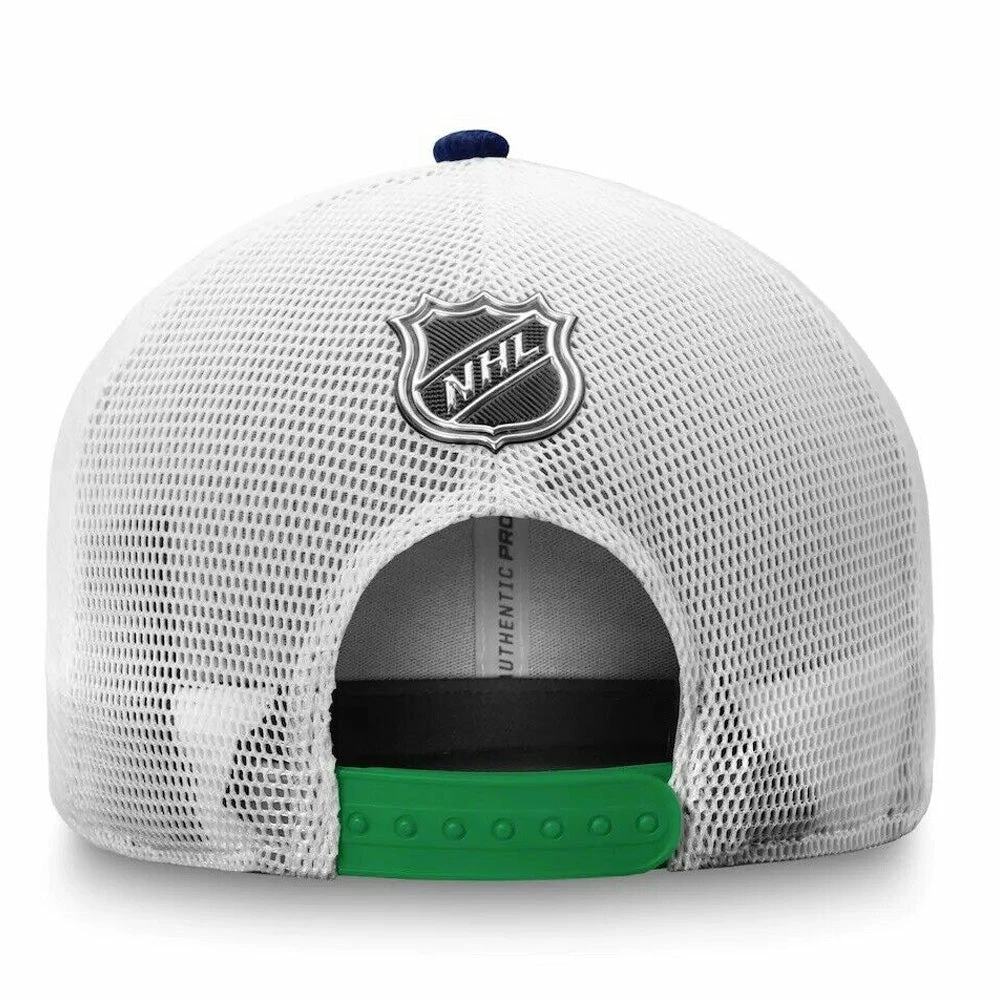 Wear what the pros wear with this Official Locker Room Structured hat from Fanatics featuring the Vancouver Canucks logo on the front with a mesh back and adjustable snapback strap.