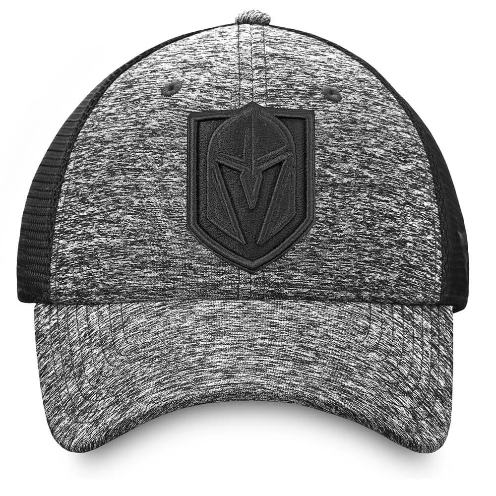 Show your Vegas Golden Knights team pride while rocking this stretch mesh hat featuring a unique Black Ice design with the hat and logo being black and grey. Embossed NHL logo shield on the back.
